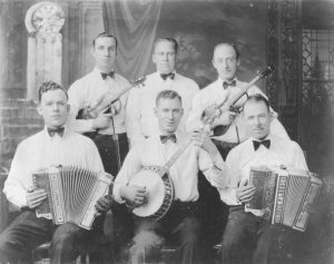 Ce mardi 13 janvier,Mathilde nous présente un reel emblématique du style Sligo : “The Tailor’s Thimble”, qui figure parmi les enregistrements mythiques réalisés en 1929 à New York par le fiddler James Morrison (en haut à gauche sur la photo, et oui, le Morrison de la célèbre Morrison’s jig, c’est lui!) et le flûtiste John McKenna, déjà évoqué à l’occasion de l’apprentissage du tune The Sailor’s Bonnet ainsi que Farewell to Whisky et The Dark Lady Dressed in Blue.